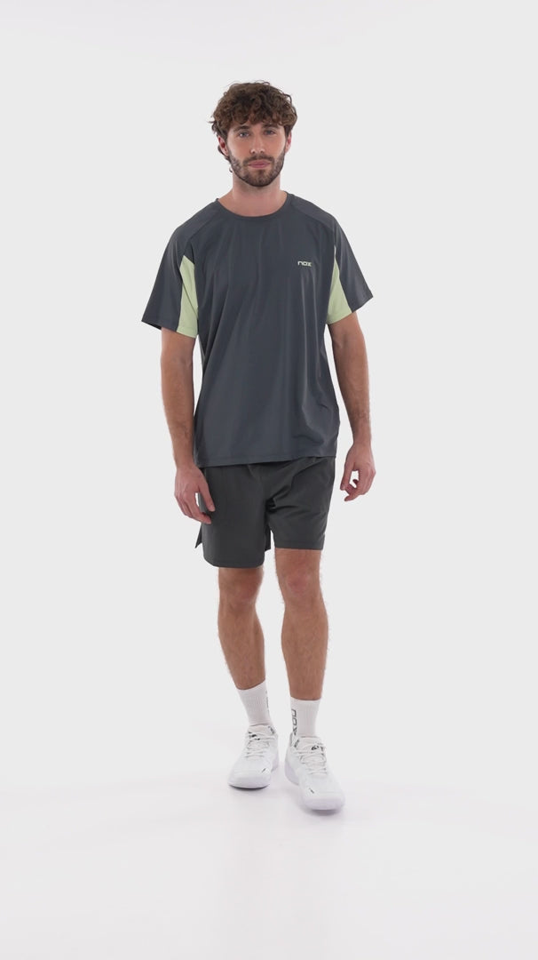 Pro Charcoal Sports Padel T-shirt in size M. Charcoal gray with light-toned details on the sleeves and the NOX logo on the chest. Perfect for regular training and competitions. Designed for athletes looking for high-performance clothing.