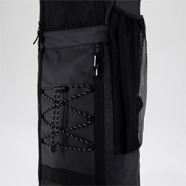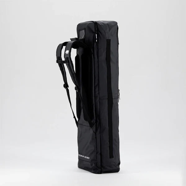 The PREMIUM RHINO was designed to meet the needs of advanced players. Made with waterproof TARPAULIN fabric for increased durability, it's reinforced with PVC on the inside. It has two spacious, subdivided compartments for clothing and/or footwear. On one side, there's a mesh pocket for storing shin guards; on the other, a lengthwise strap allows for attaching accessories. The front features a multipurpose pocket, a multifunctional mesh pocket, and an adjustable drawstring for securing items.