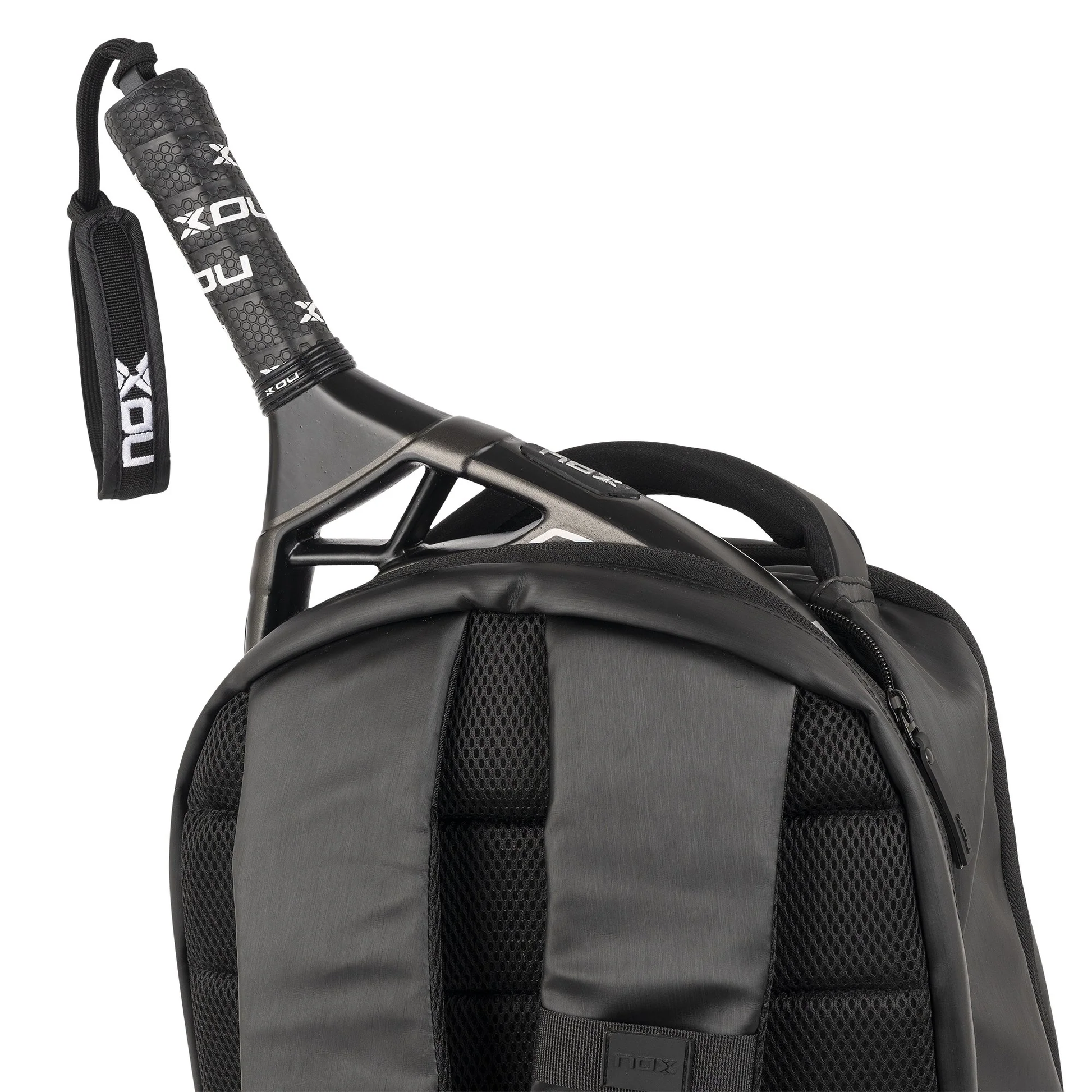 Elaborada meticulosamente con materiales de primera calidad, nuestra mochila fusiona a la perfección funcionalidad y estilo en un único producto. Su diseño amplio y bien organizado te brinda la capacidad de transportar todo lo que necesitas, desde tu portátil y libros hasta tu completo equipamiento de pádel, incluyendo pala, zapatillas, equipación y accesorios.