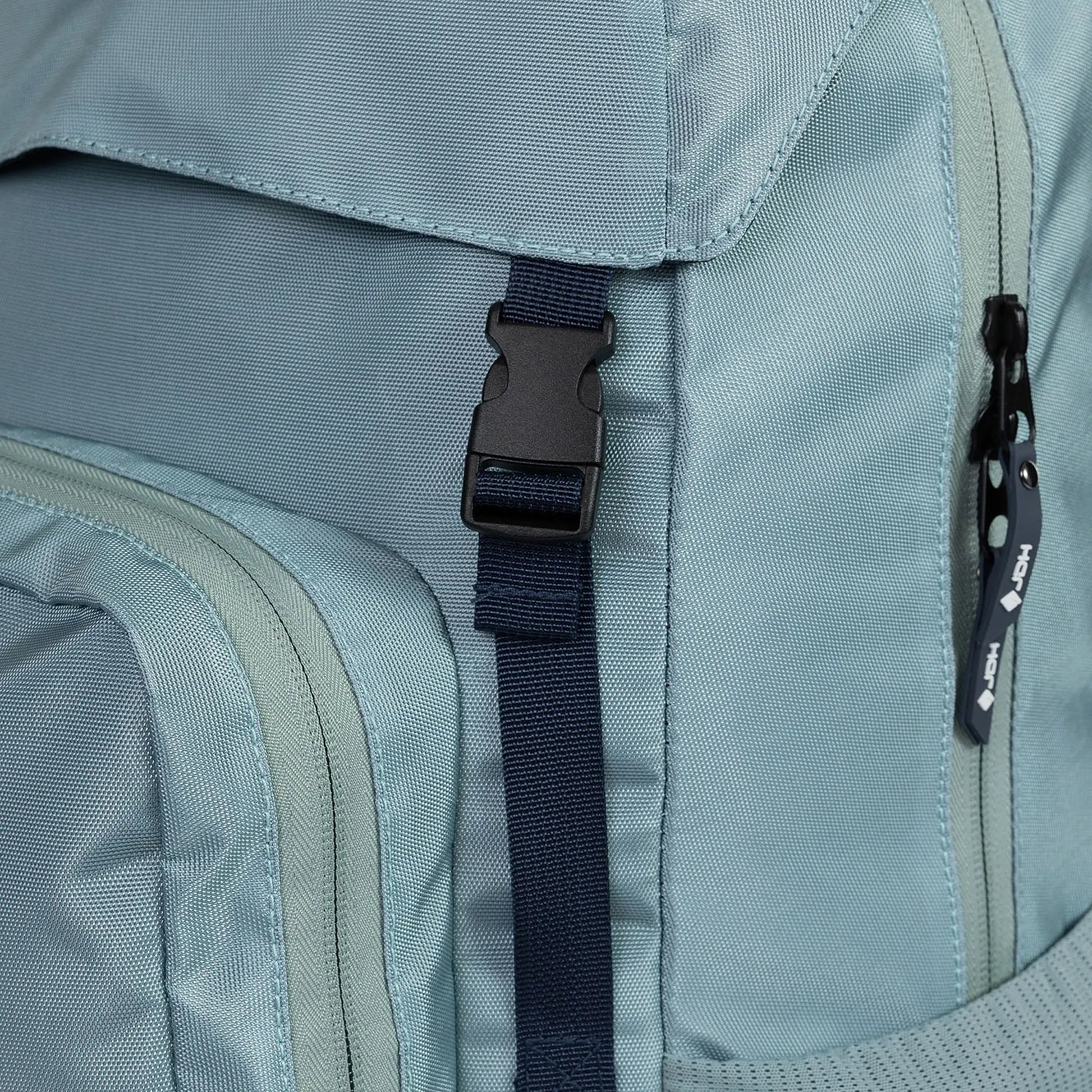 - Compartimentos: Un compartimento principal, un bolsillo trasero y un bolsillo frontal grande, todos con cremallera; dos bolsillos laterales para botellas de agua y una solapa grande en la parte superior.